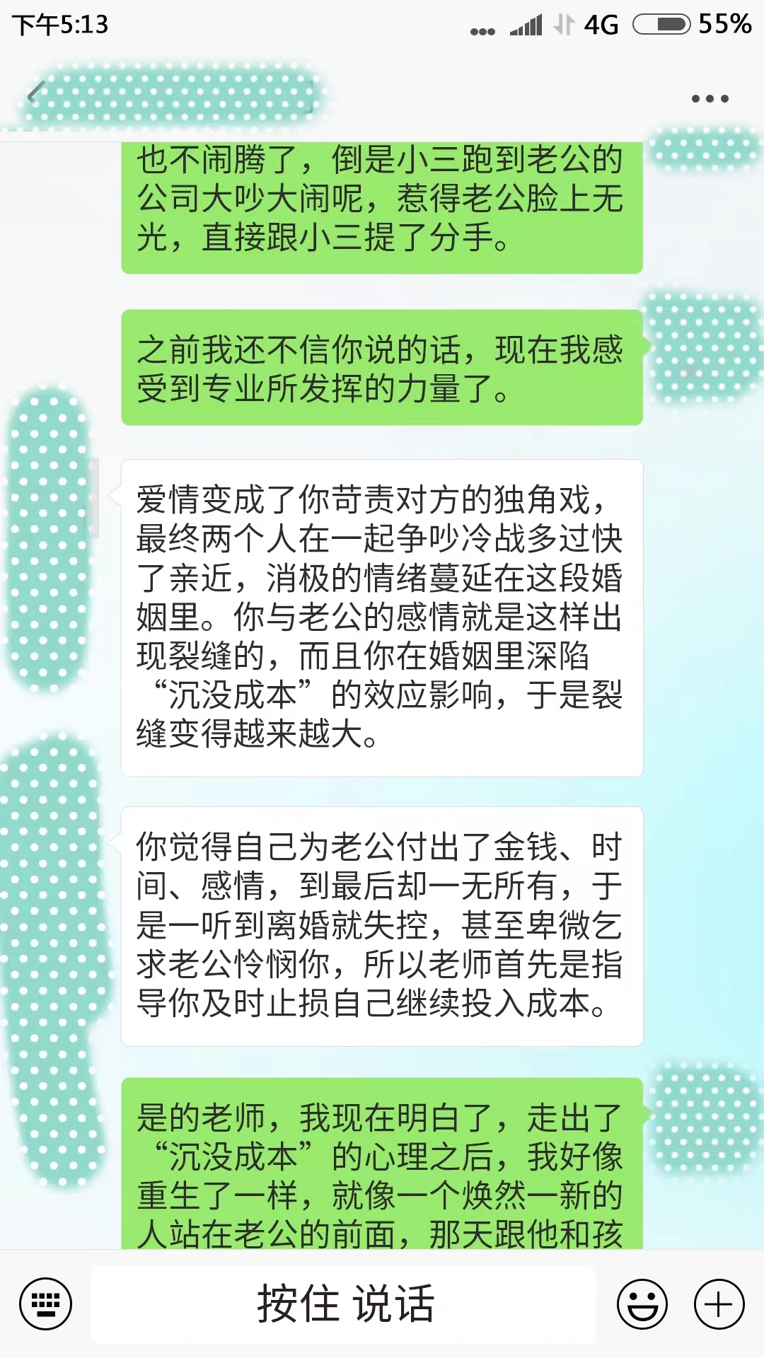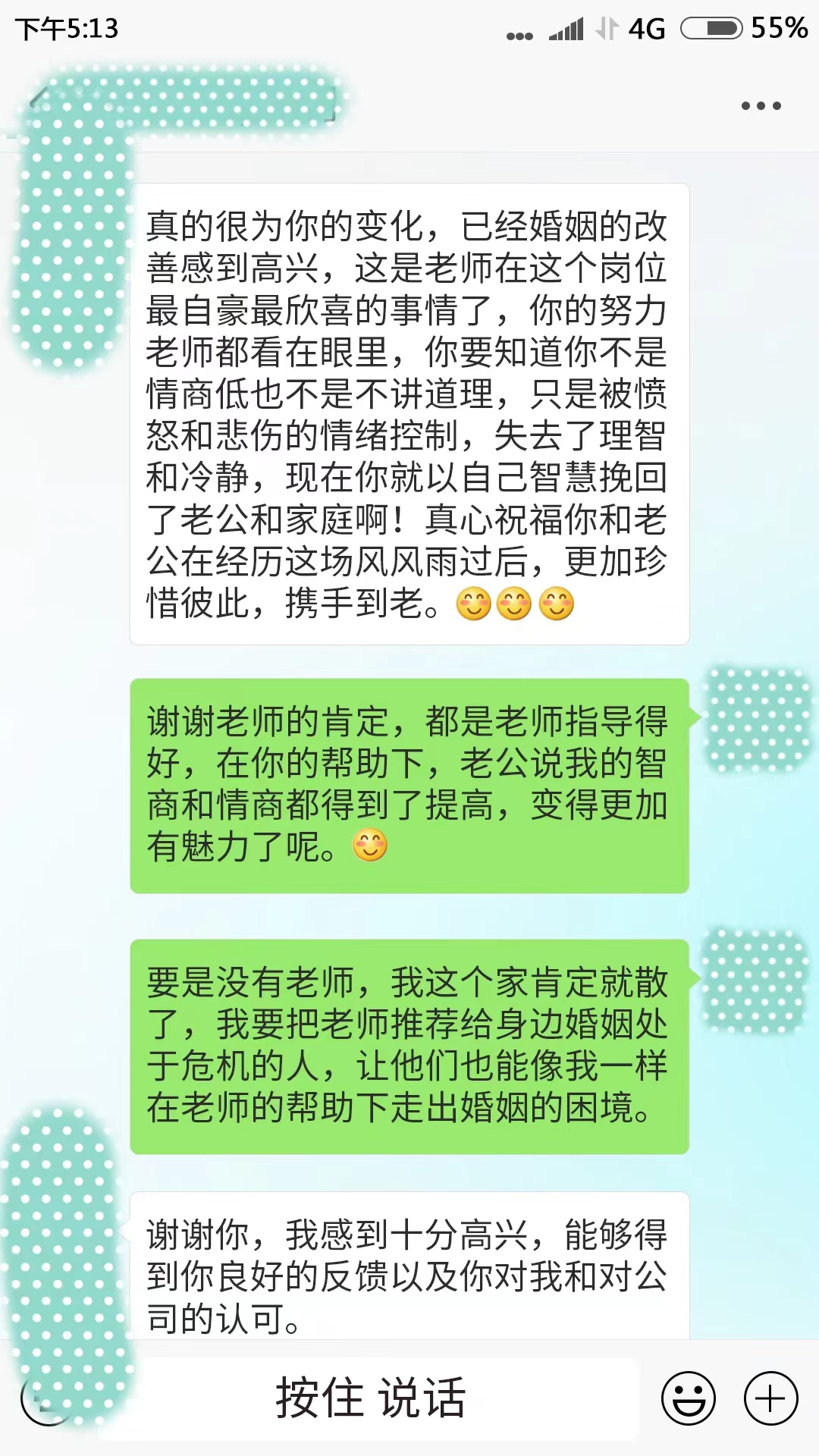 说实话,真佩服慕源老师的能力。帮助了多少人挽回家庭的。很多女人遇到这种事情都是睁一只眼闭一只眼度过了漫长的一生,但是女人凭什么要这样委屈求全?!幸福是自己争取的,支持楼主,支持慕源老师